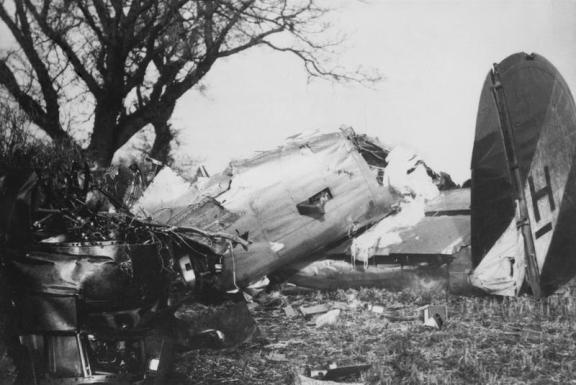 The notorious winter weather of 1944 would claim yet another victim before the year was out. On December 27th 1944, #42-50898 failed to rise more than a few feet after taking off from a salted and slippery runway at Old Buckenham. Lt. Roscoe Brown was heard to say, “I cannot keep her up, we have had it”, just before the aircraft slammed into the ground. In the ensuing crash, the aircraft broke up and burst into flames, the fire setting off bullets and causing the bombs to explode. There was considerable ice that day, the runway and aircraft’s pitot tube later being found to have been iced up, adding to the already difficult flying conditions. As a pathfinder, it came as a terrible blow to the 453rd whose mission that day was subsequently scrubbed. Only four of Lt. Brown’s crew managed to escape the inferno that followed – it was a sad end to 1944.