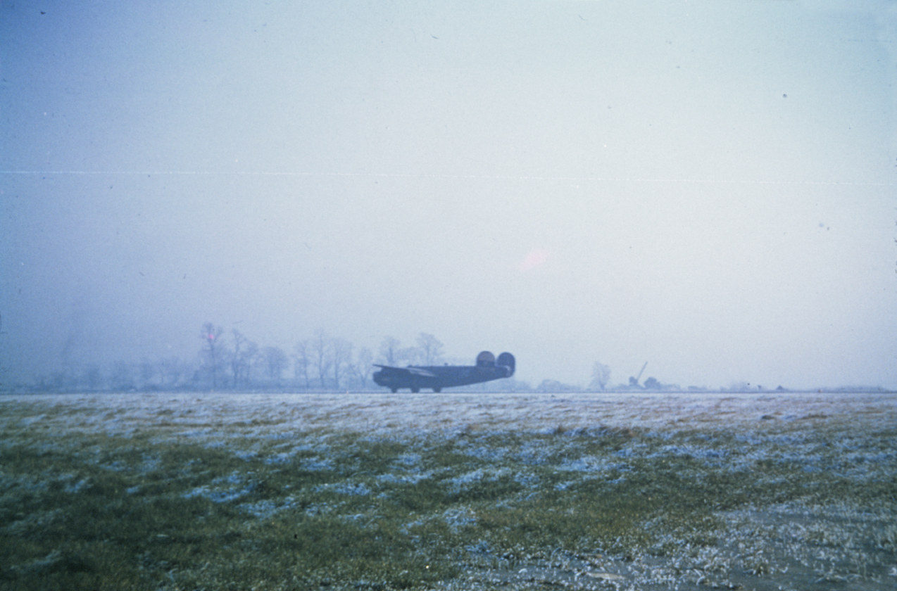 The 446th would unusually send just one aircraft to Bremen four days later. This aircraft, a 704th BS Liberator, #42-7494 “Bumps Away” was hit by flak over Texel, one of the Dutch Wadden Islands. The strike sheered the tail turret sending the aircraft momentarily out of control. After the pilot (Second Lieutenant Thomas B. Long) stabilised the aircraft, it went on to complete its mission only to collide with another B-24 of the 392nd BG on its return journey. The collision sent the Liberator crashing into the North Sea killing all those on board*1.