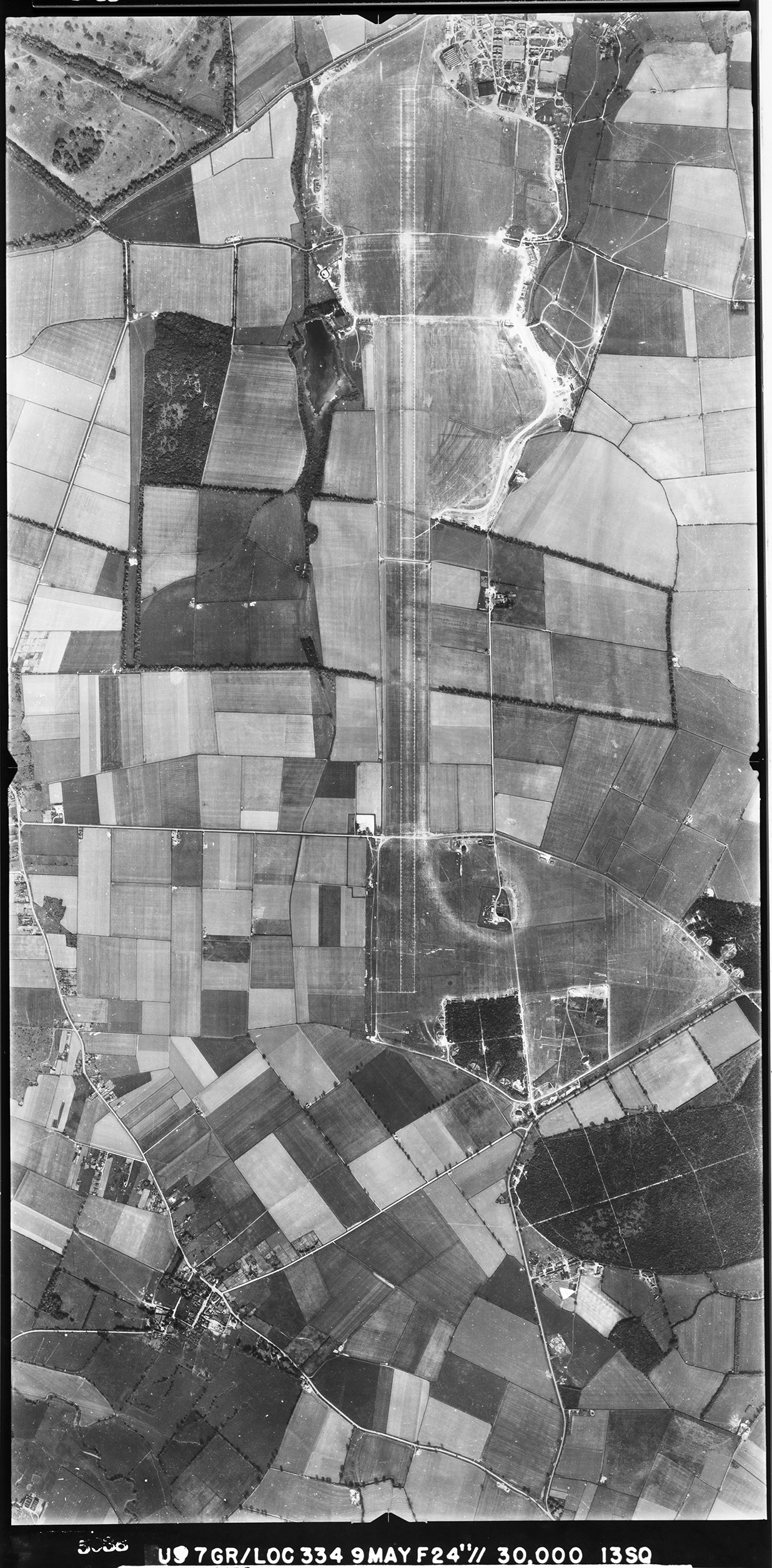 Photograph of Wittering airfield looking east, taken 9th May 1944. Collyweston can just be seen at the bottom end of the main runway. (@IWM US_7GR_LOC334_V_5038).