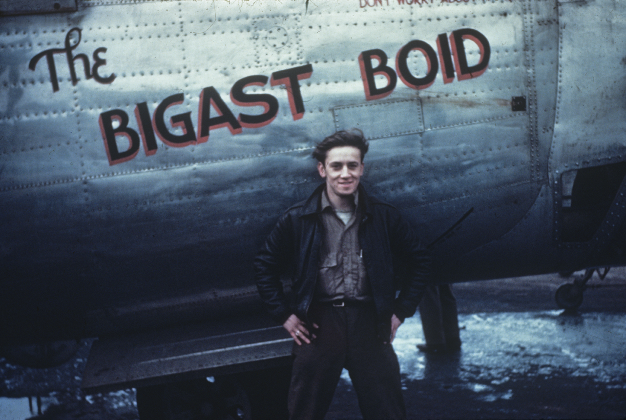 Leon J Nowicki, engineer of the 389th BG with the B-24 “The Bigast Boid”. The aircraft would be lost to ‘friendly fire’ on April 14th 1945. (@IWM FRE 6480)