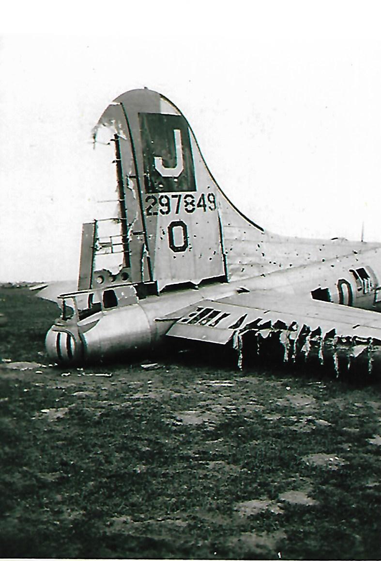 DeWitt flew straight in to Debach narrowly missing parked aircraft and vehicles. The crew abandoned the B-17 and within moments the entire bomb load exploded in an explosion that was so severe that the nearby hangar doors were blown completely off their rails. The aircraft was blown apart and pieces spread across a wide area.
