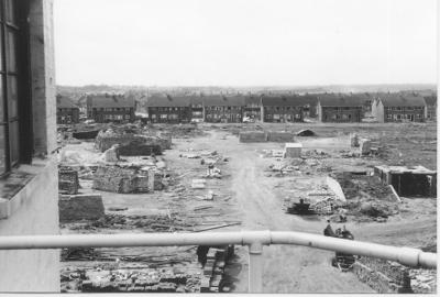 A final view to the south from the Control Tower of Gravesend aerodrome, prior to its demolition in 1961. The stacks of bricks piled up on the old hangar floors are for the construction of the houses that made up the final stage of the development. These houses were built where the airport buildings once stood, thus removing the last visible trace of this once vital fighter station. Photo: P Connolly, Gravesend Airport Research Group, via Ron Neudegg.