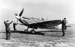 Spitfire LF VB BM271/SK-E Kenya Daisy of No 165 Squadron returns to its dispersal at Gravesend on 16 October 1942. (© IWM CH 7686)