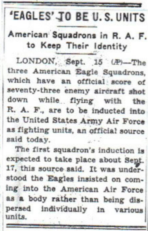 133 Squadron had been on the front line serving at RAF Biggin Hill and RAF Martlesham Heath before arriving at RAF Great Sampford, a satellite for RAF Debden. The ground crews were predominately British, assisting and training the US ground crews in aircraft maintenance and support. All the pilots however, were US volunteers, formed into three separate squadrons but under RAF control.