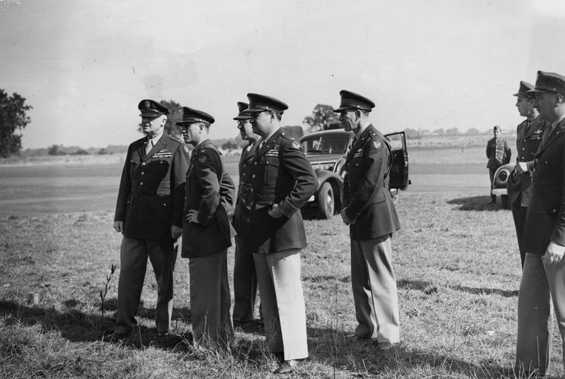 General Arnold with Colonel Frederick W Castle, Brigadier General Curtis LeMay, General Williams and General Anderson during a visit to RAF Rougham, home of the 379th BG. *2