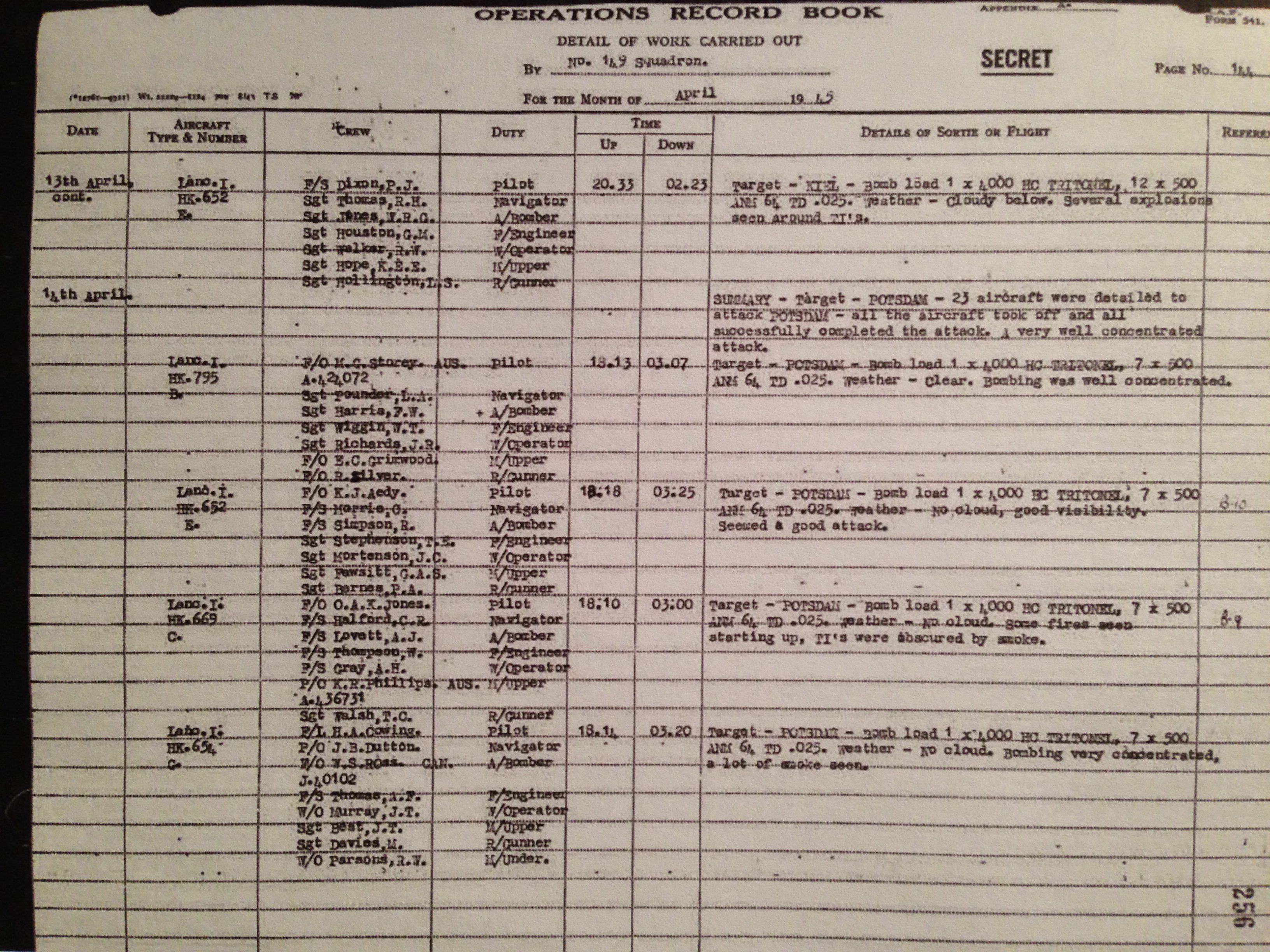 Middleton’s first experience of operations, was in a Short Stirling over the Rhur, the industrial heartland of Nazi Germany. After spending a short time with 149 squadron he moved temporarily to No. 7 Squadron (RAF).