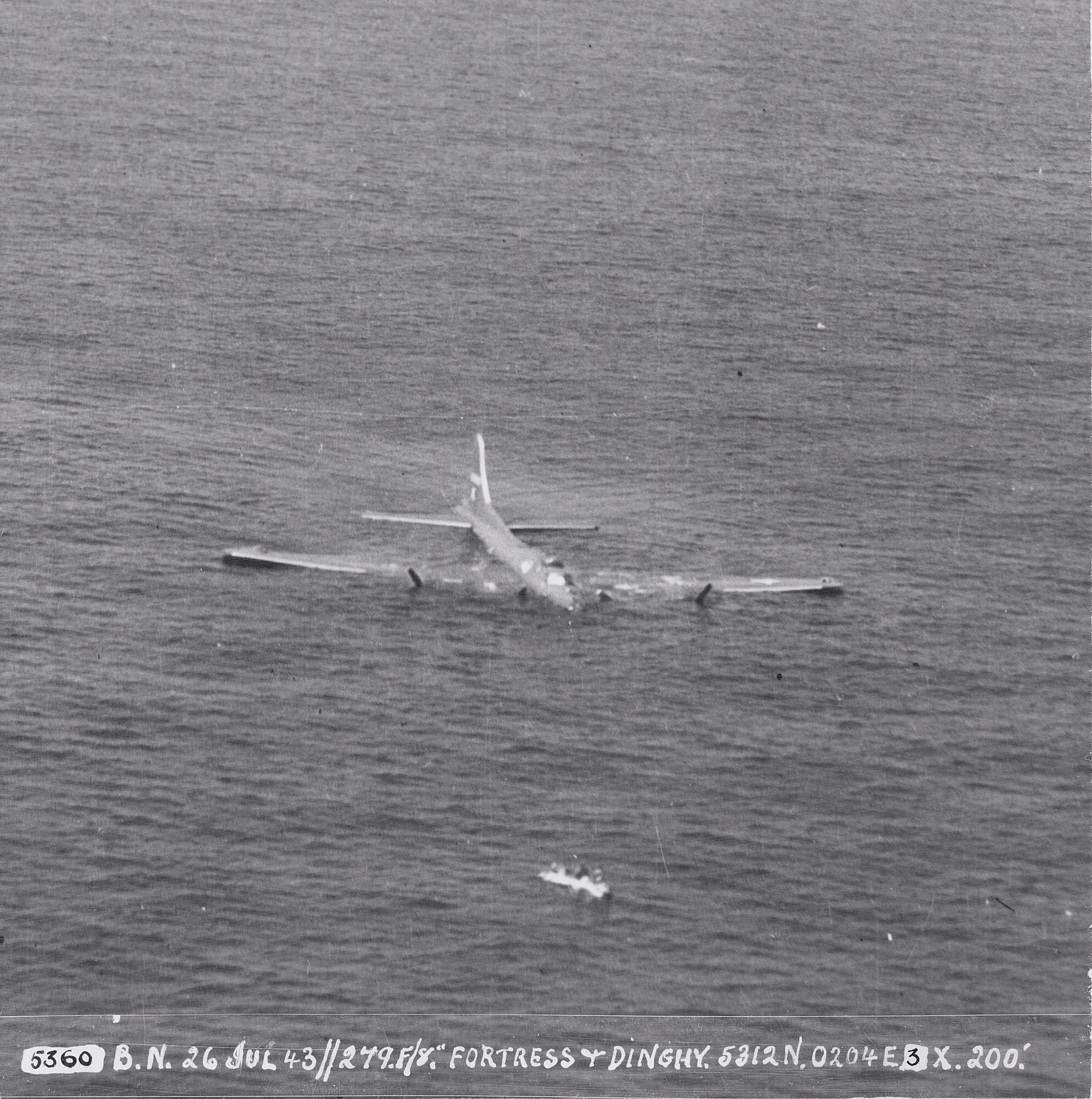 After ditching B-17 #42-29981 (92nd BG) on 26 July 1943 in the relative safety of a calm sea, the crew managed to escape a and (with difficulty) climb aboard their life raft. An ASR aircraft from RAF Bircham Newton located them and a rescue ensued (AAM UPL 39104).
